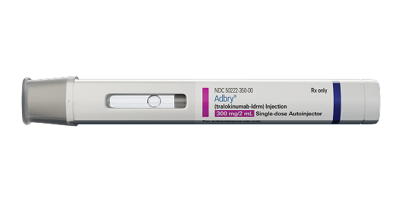 ADBRY® (tralokinumab-Idrm) injection is indicated for the treatment of moderate-to-severe atopic dermatitis in patients aged 12 years and older whose disease is not adequately controlled with topical prescription therapies or when those therapies are not advisable. ADBRY can be used with or without topical corticosteroids.